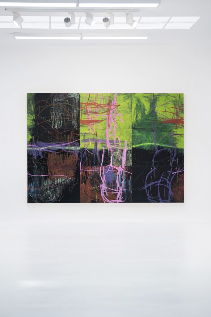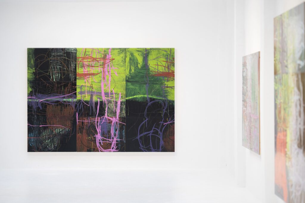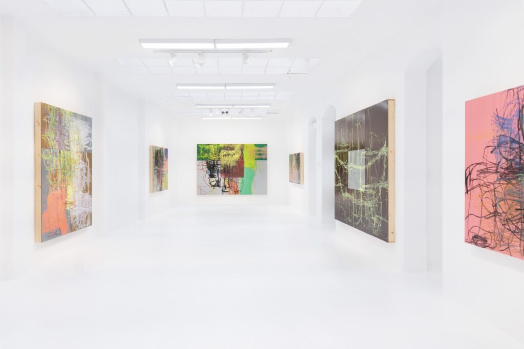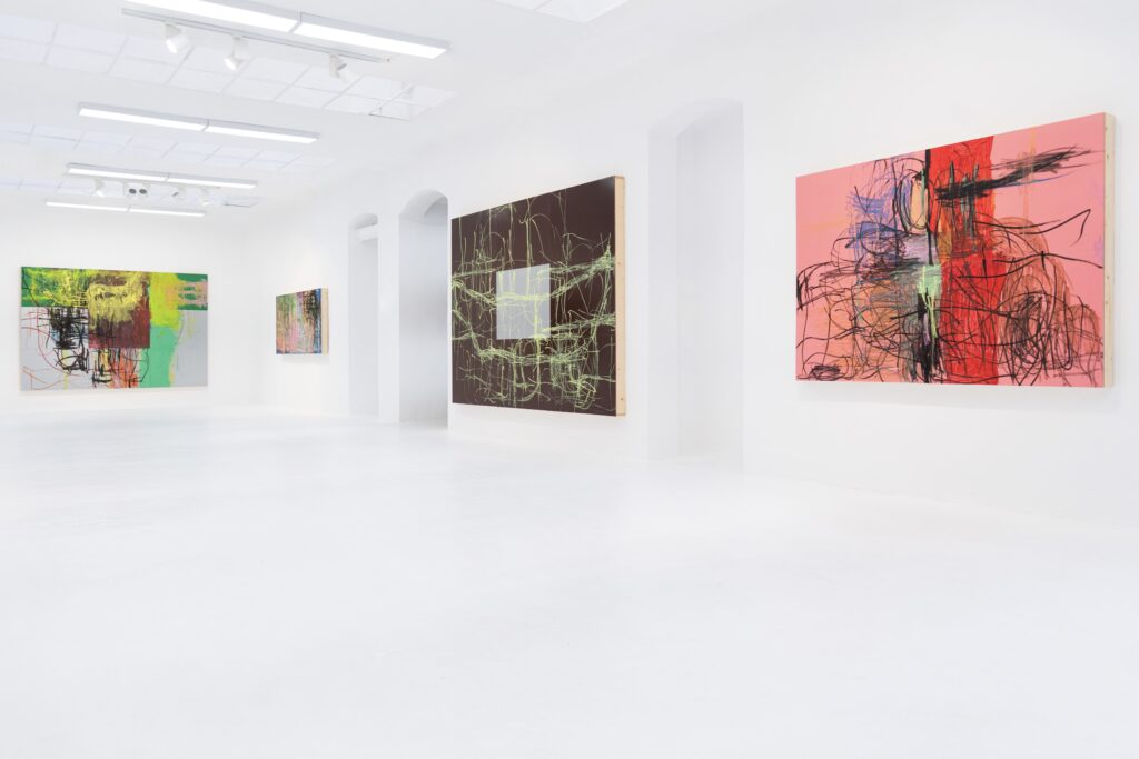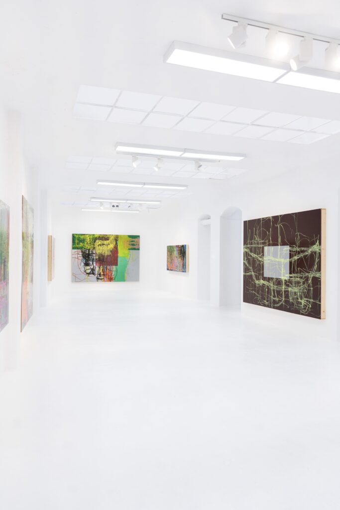 Barbora Lepsi has created a series of monumental abstract paintings for the HYB4 Gallery exhibition space, works that directly respond to the venue and consistently develop her long-term theme of abstract expression. The resulting artworks are grounded in a confident gestural expression, spontaneity, and a precise sensitivity to composition and color. The presentation is an integral part of the work—deliberate, exact, and enhancing the power and monumentality of each painting. Rhythm, speed, and the physical trace of the painting act are key to Lepsi’s practice. What emerges is a visual language that is deeply personal, yet openly communicative.