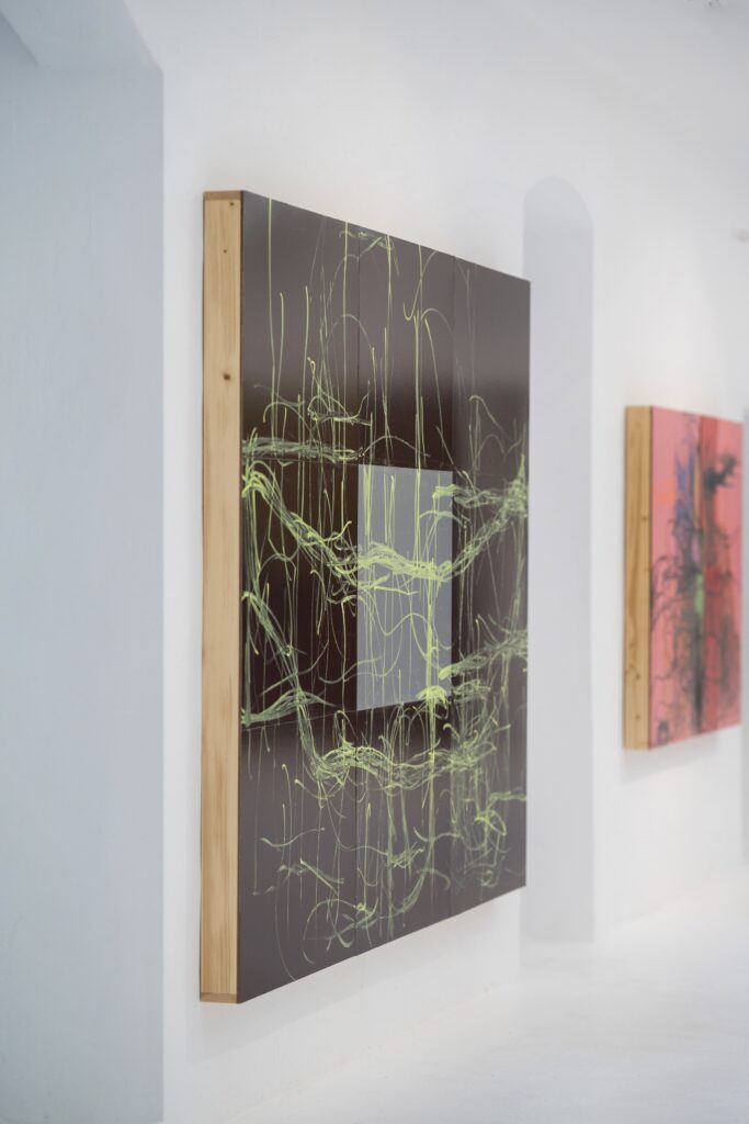 Barbora Lepsi’s works have the ability to immediately capture attention, even though they do not stem from a specific narrative. They embody depth, authenticity, and permanence— qualities that meet the high standards of contemporary art. The artist currently lives and works in Berlin—a city that provides her with intense stimulation, while also demanding perseverance and inner conviction. This exhibition is a testament to her focused approach and creative strength. The large-scale site-specific installation at the HYB4 Gallery allows her works to fully shine—in their physical generosity, emotional urgency, and painterly quality.