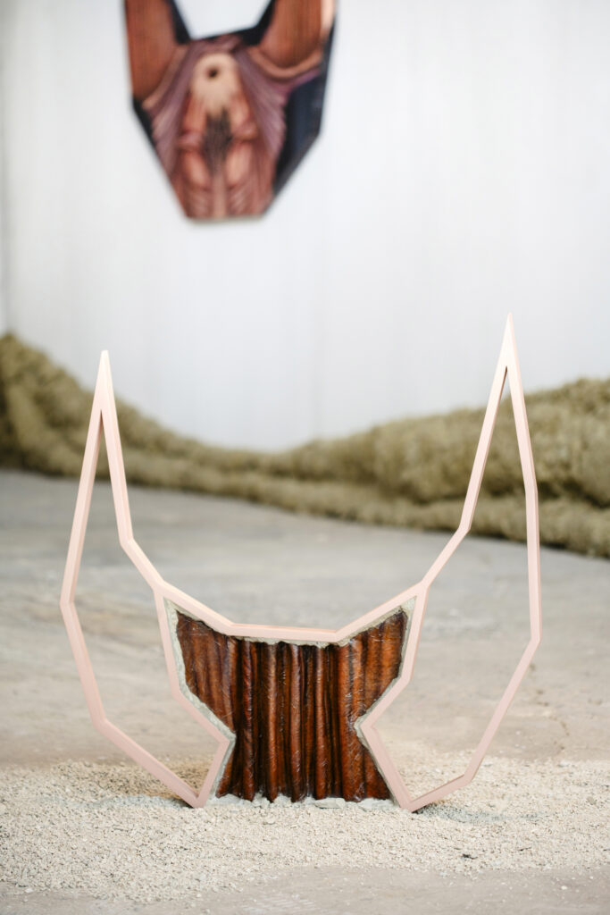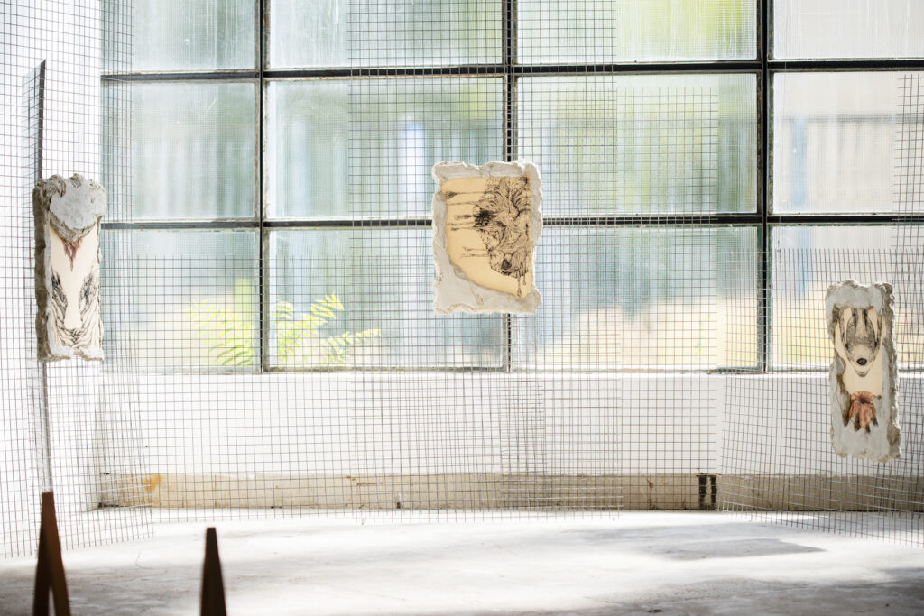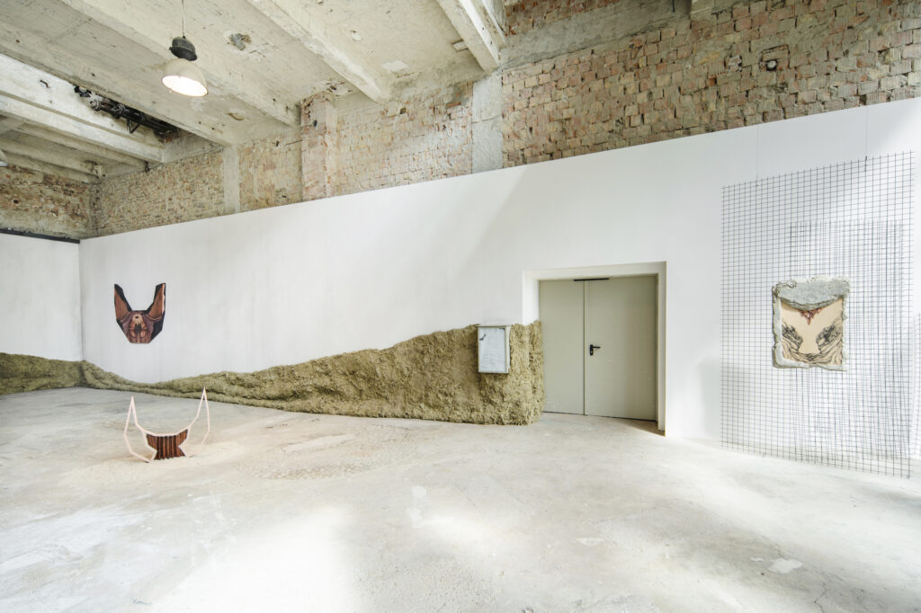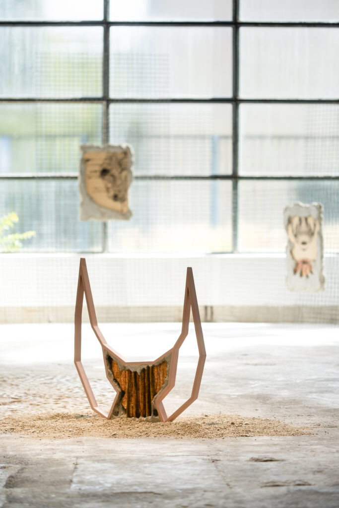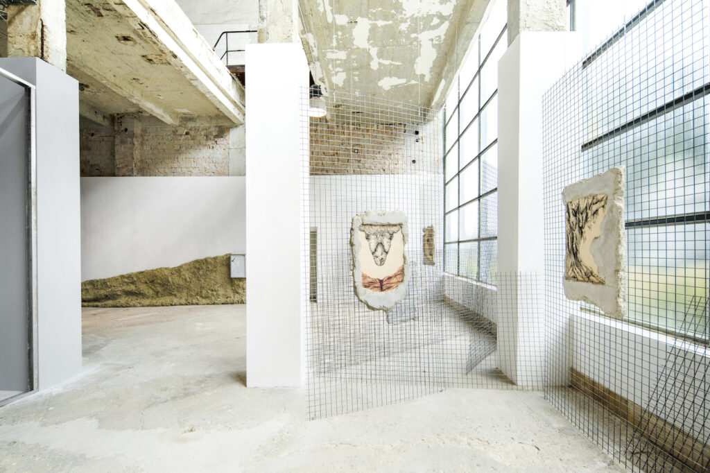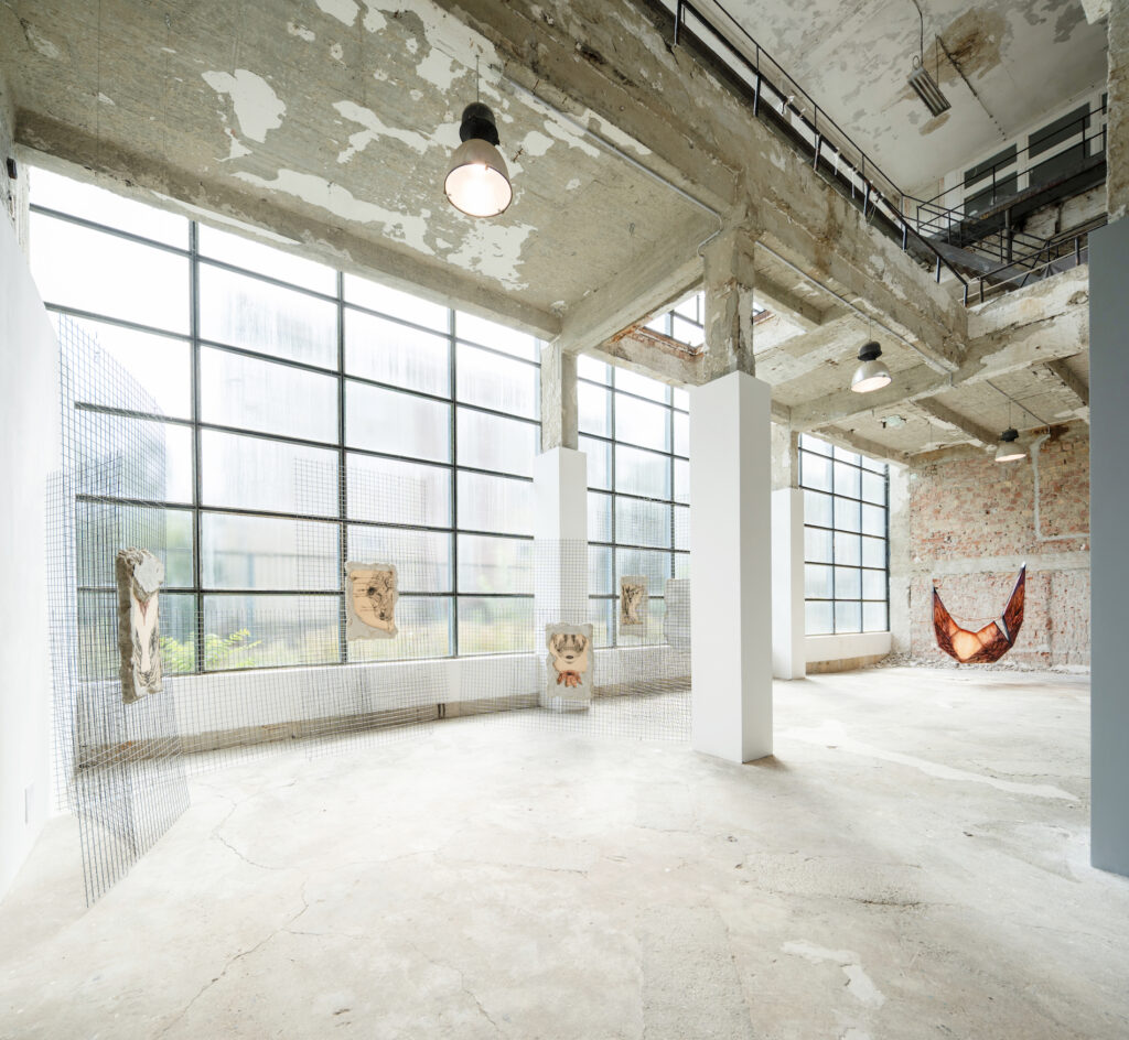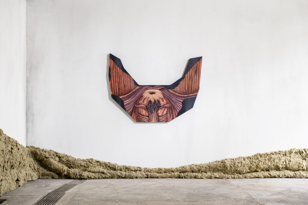 Lili Agg’s solo exhibition Find T-6391/3 transforms the former Torula yeast factory into an imagined excavation site from the future. The present is unearthed as the past, in a future where the concepts of art, artwork, and artistic institutions no longer hold meaning. Within this framework, the narrative total-installation’s groups of objects appear as archaeological finds to be deciphered—fragmented traces of the sociopolitical order of a bygone era. Yet within the dialectic of spatial arrangement, it is not entirely clear whether we are truly confronted with a landscape: nature quietly assumes a human form, terrain turns into folds of skin, roots and vines transform into tendons and internal organs.