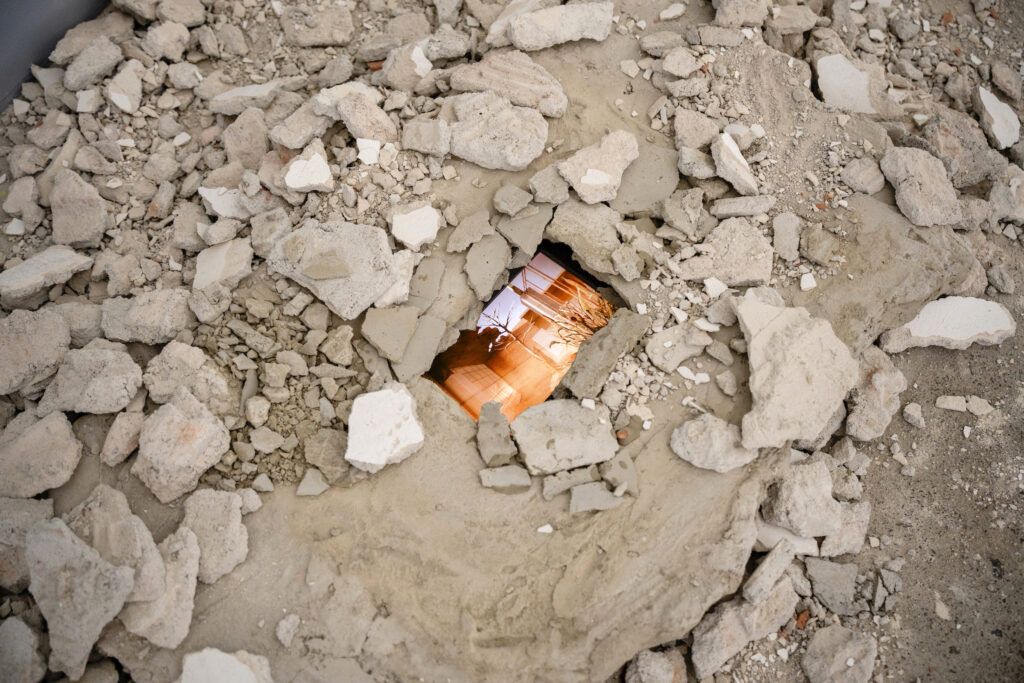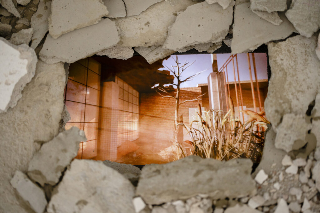 Find T-6391/3 is based on Agg Lili’s doctoral research, which rethinks the notion of utopia and, through contemporary utopia theories, attempts to examine sustainable culture while probing the potential role of art in shaping our imagination of the future. Although the exhibition outlines a dystopian vision, Agg employs the speculative method of future archaeology to reveal how, once distanced, every present cultural object (in the Groysian sense) in fact becomes a possible part of the archive of the future. Thus, the destruction that appears in the exhibition space becomes a symbol of renewal—the total demolition of ossified, authoritarian, and (self-)exploitative systems, and of building anew upon the ruins. The installation functions as a kind of playground or “sandbox,” where the viewer navigates among parallel narratives, identifying the power structures and systemic flaws that seep into the deepest layers of cultural institutions and human existence. Along the designated path, the visitor encounters concepts that, as tools of social adaptation, help dismantle these destructive and oppressive processes—ushering in the birth of a utopian beginning.