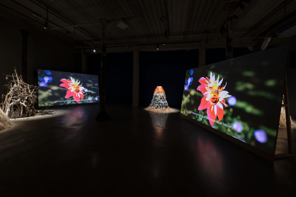 Against the linear narratives of capitalist realism and the oft-invoked crisis of imagination, the artist composes an ecosystem of her own, constructed through words, sounds, bodily gestures, images, and objects. Her stories are populated by multiple beings engaged in reciprocal interaction. The outcome is a heterogeneous assemblage in which the seams remain visible, allowing for a respite from the victors’ linear account – from the concepts and meanings that have led us to ruin, severing humans from the unnamed constituents of our environment.