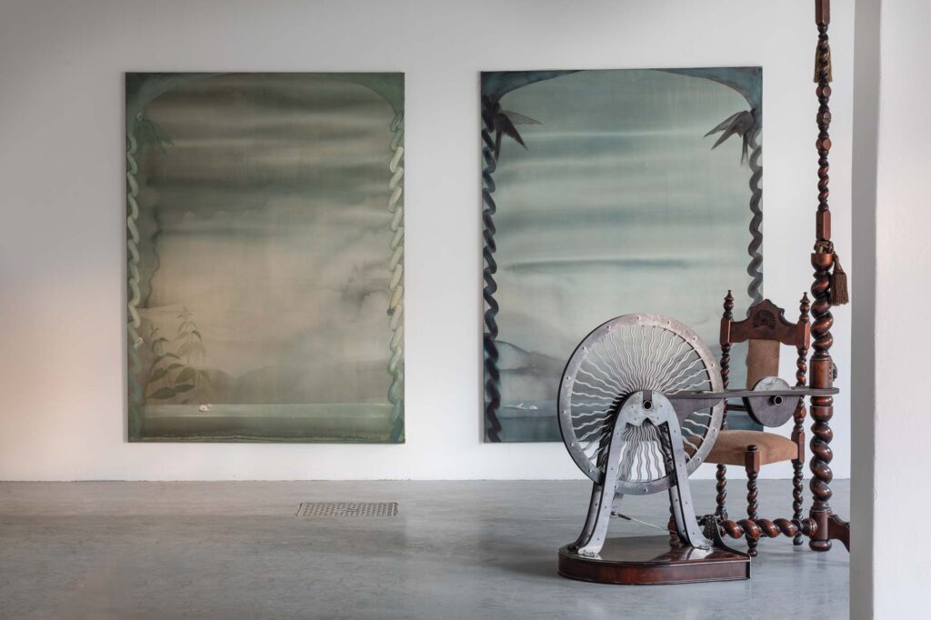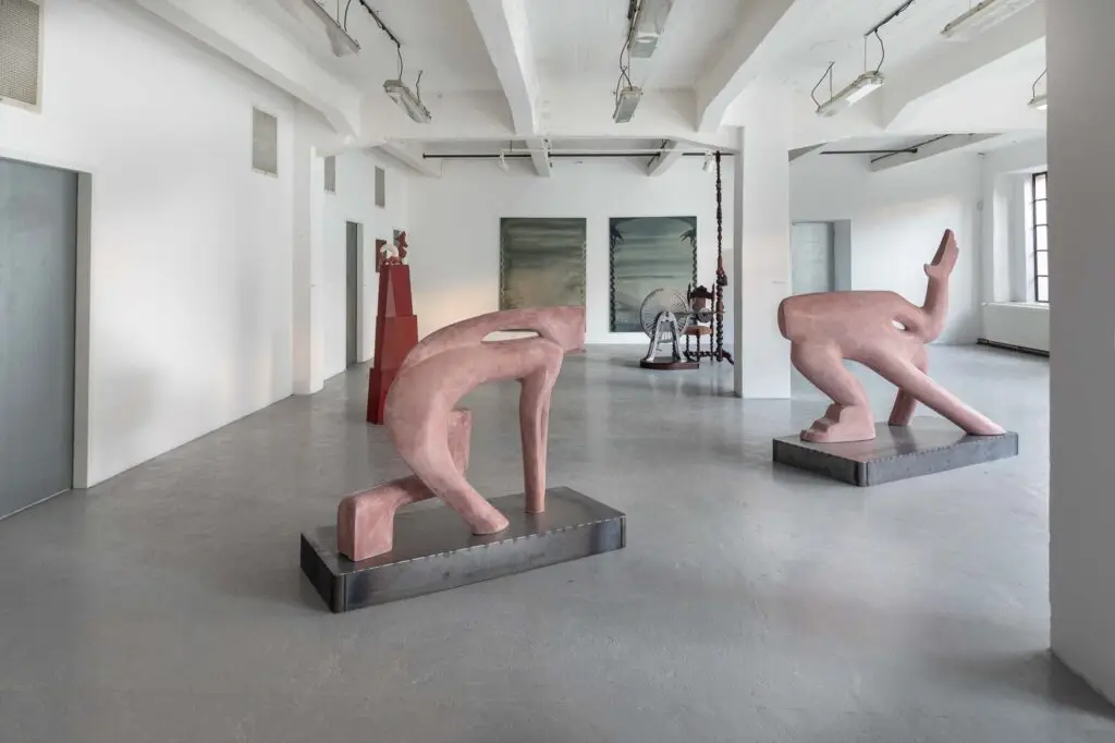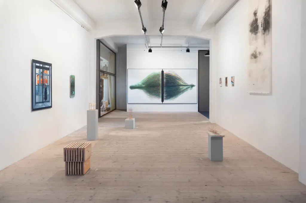 The works presented on the upper floor of the studio thematize the openness and reality of conscious, constructive realms of being, reflect on social or personal phenomena, and convey generally shared values. The lower floor provides a base for works thematizing phenomena impossible to grasp rationally: powerful life forces we are still only striving to become conscious of. They revive archetypes and refer to mythological symbols. They approach the non-human, physical and chemical processes of a mineralogical nature, which, however, inevitably cyclically transport us back to our individual essence. Both planes exist in a lively creative mutuality.