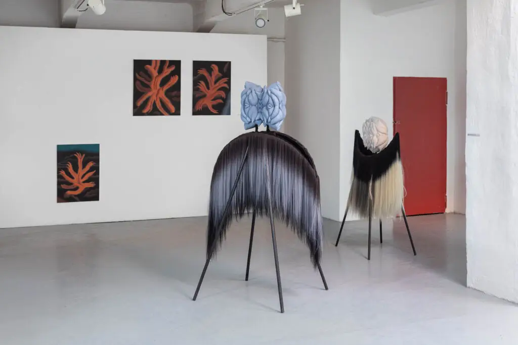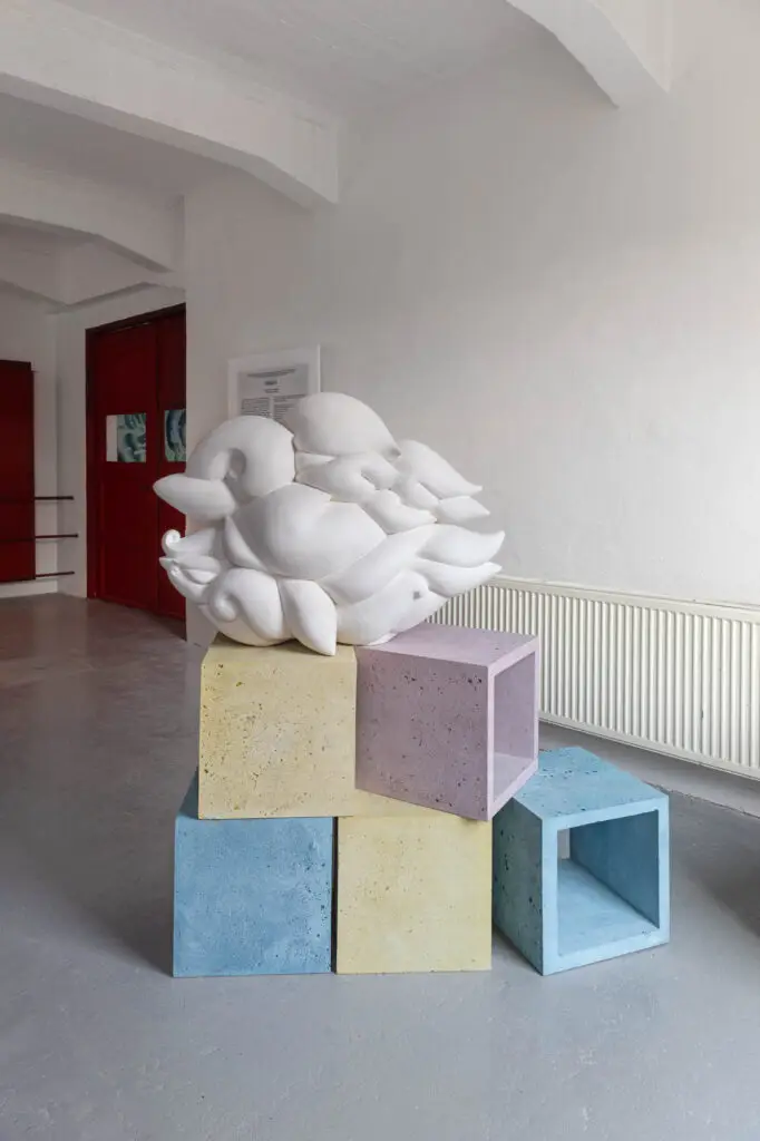 A community of paintings, sculptures and objects as a tangible product of a base for creative operation. As a memory of a social space, the existence of a whole in all its variations, the stream of events lived. As a testimonial to values fully anchored and constantly creatively manifested. In a space catering not only to fledgling artists: a space for mutual intergenerational synergy, openness to foreign creative approaches, a space where works exploring topical themes are created and presented. We find ourselves at an exhibition held to celebrate Studio PRÁM’s tenth anniversary. It is installed both in the gallery and both shared halls of the studio, and while it features works from the last two years, it is recapitulative in nature. Contemporary works naturally encompass the past.