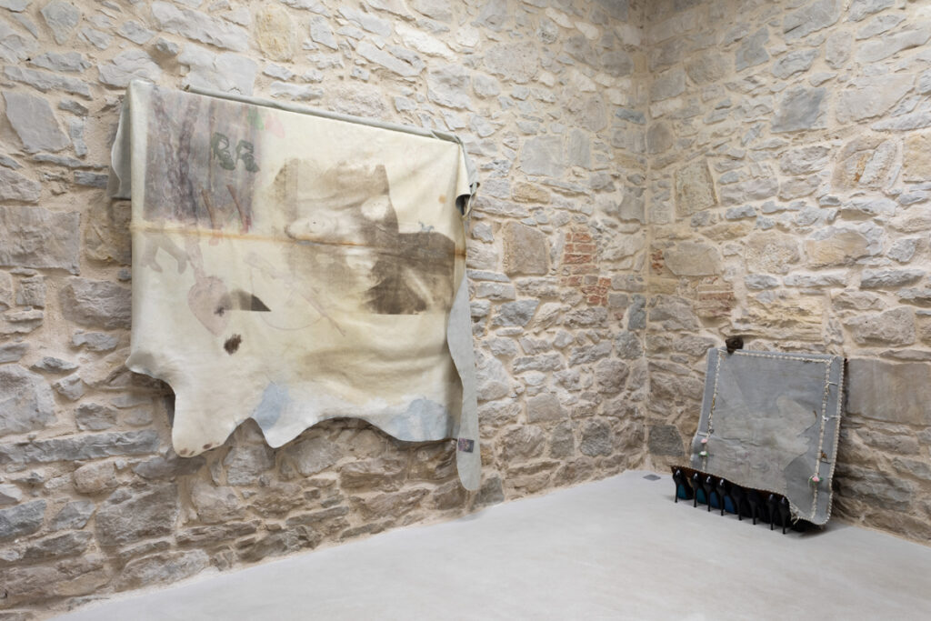 The exhibition Eyes without Face is not a closed whole of works with predefined relationships; on the contrary, it invites the viewer to personally and directly confront the raw materiality of the installation. Appropriated textures, surfaces, and smells now appear as images that we can further exchange, possess, and manipulate.